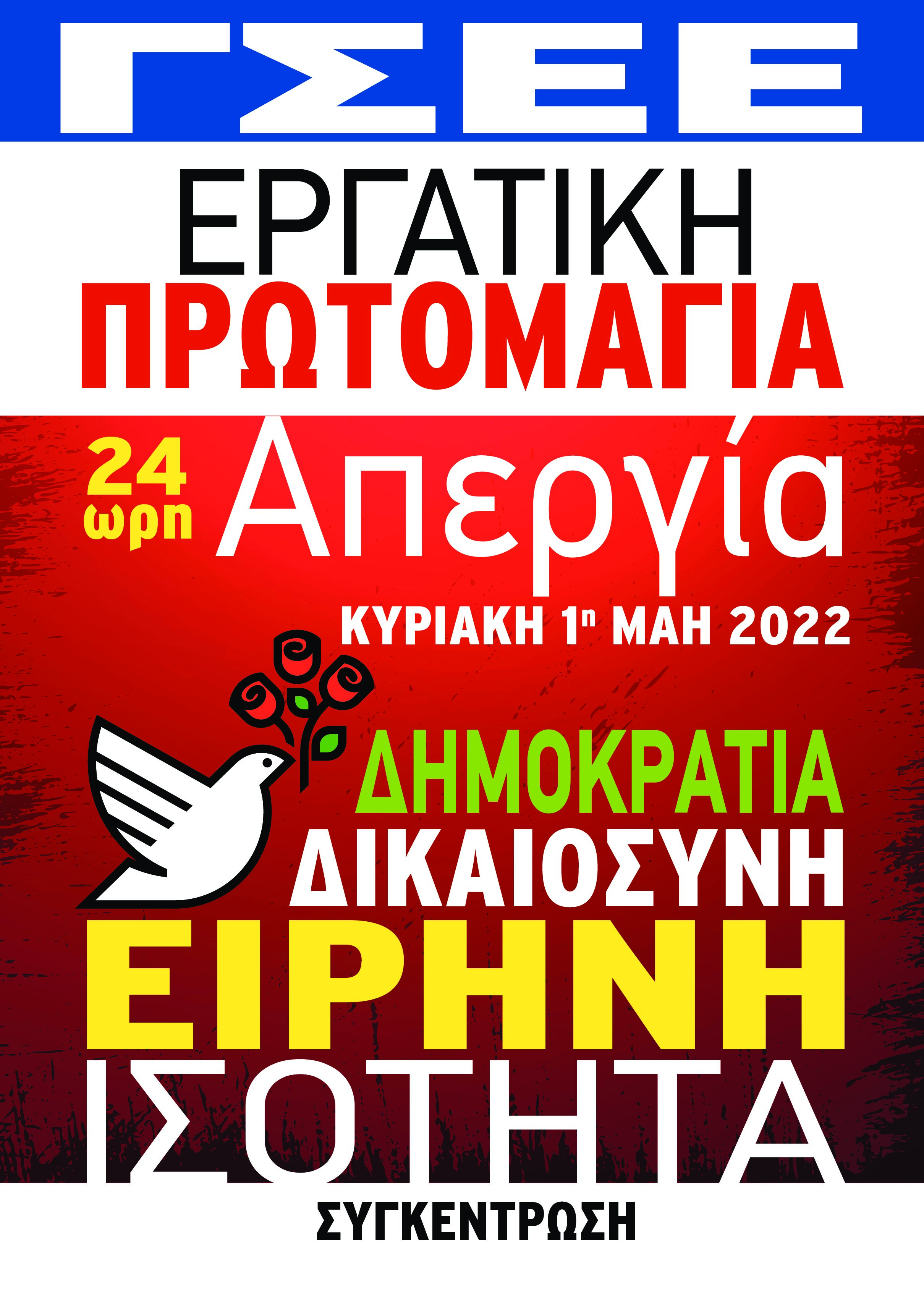 24ΩΡΗ ΑΠΕΡΓΙΑ ΚΥΡΙΑΚΗ 1η  ΜΑΗ 2022