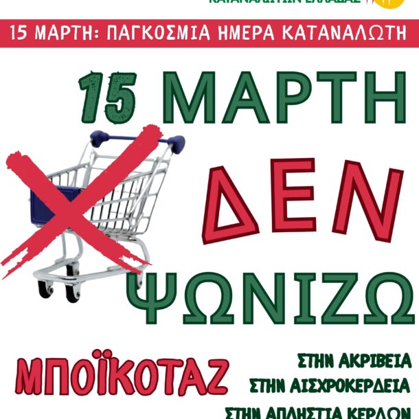 Ένωση Εργαζομένων Καταναλωτών Ελλάδας: Διαμαρτυρία κατά της ακρίβειας: 15 Μάρτη δεν ψωνίζουμε!
